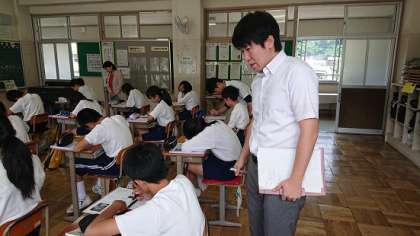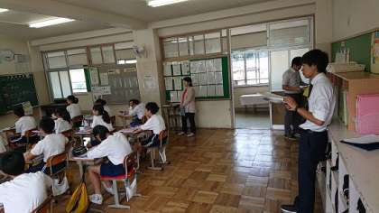本日、北垣教諭が道徳の授業を行い、それを教員が見合いました。授業改善のための研修をしています。