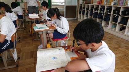 1年生は国語で「ものづくりに生きる」という教材を学習しています。自分のお気に入りの言葉を選び、それをポップにする活動を行いました。