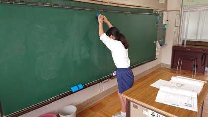 2年生の教室では、係の生徒が黒板をきれいにしていました。いつもありがとうございます。