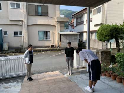 生活健康委員が朝のあいさつ運動を行っていました。教員も一緒に立ち、一人ひとりに声をかけています。