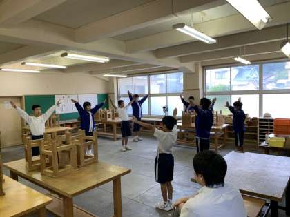 3年生を励ます会に向けて、応援団員による練習を行っています。2年生の1年生に対しての指導が上手で、1年生がどんどん上達しています。応援団の皆さん、頑張ってください。
