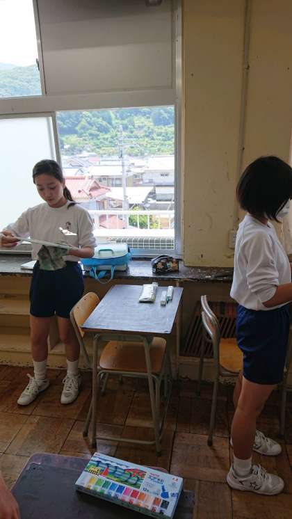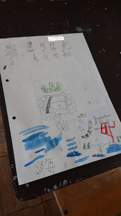 1年生は美術の学習を行っていました。漢字の一部分を自分なりに考え、字を絵に表現しています。皆さんのオリジナリティーが光っています。