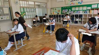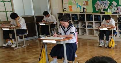 3年生の期末テストの様子です。午前中5教科のテスト(技術・家庭は1時間で2教科)に臨んでいます。