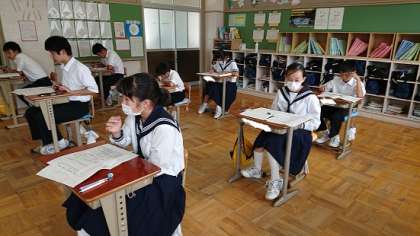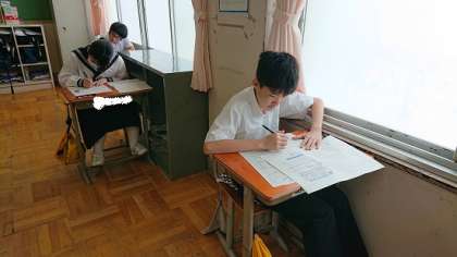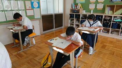 2年生の期末テストの様子です。午前中5教科のテスト(技術・家庭は1時間で2教科)に臨んでいます。