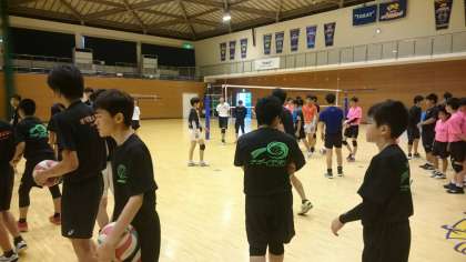 男子バレー部は、東レ体育館で合同練習に参加しています。頑張っていきましょう。