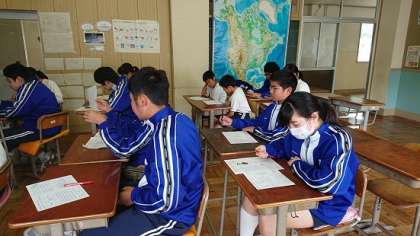 2年生は英語で期末テストの返却が行われました。間違っていたところを再度確認していました。