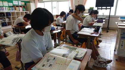 3年生は社会で「第二次世界大戦」について学習をしていました。どのような経過で第二次世界大戦が終結したかをまとめ、紹介しあいました。