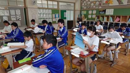2年生は国語で「想像する言葉」という教材を学習しています。文章を書く際、どんなところに気をつけたらよいかを出し合って、それを元に意見交流を行いました。
