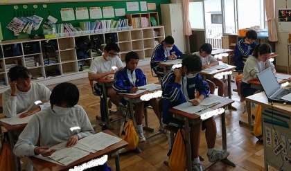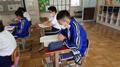 3年生は理科で期末テストの返却が行われました。間違っていたところを再度確認していました。