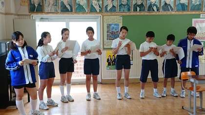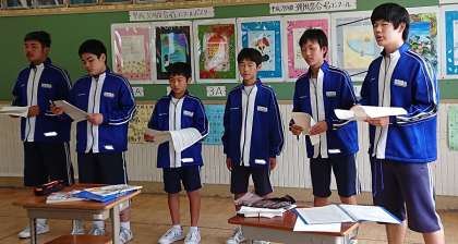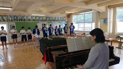 2年生は音楽で合唱曲「ふるさと」をパートごと歌っていました。きれいな歌声が響いています。