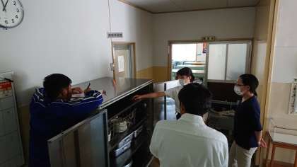 生活健康委員が、初又先生や渡部先生と一緒に残量をチェックしています。