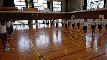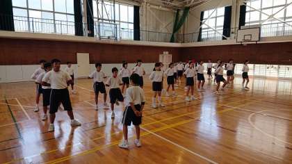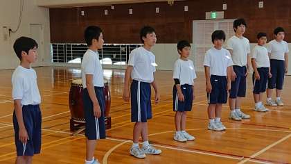 1・2年生が合同で昼休みに応援練習を行いました。3年生のためにと、みんな声を張りあげ練習に励んでいます。