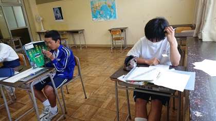 3年生は美術で期末テストの返却が行われました。間違っていたところを再度確認していました。