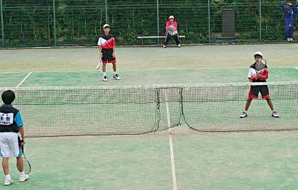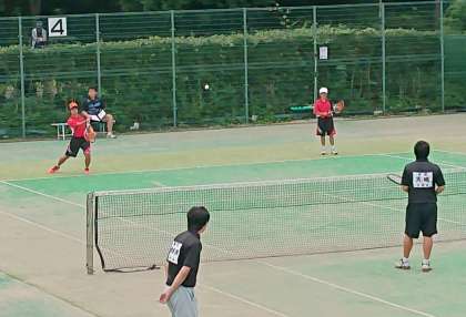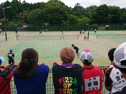 男子ソフトテニス個人戦がスタートしました。戸田中大応援団が見守る中、選手は頑張っています。