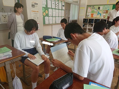 3年生は数学で「2次方程式」を学習しています。この授業は、授業力向上のために公開授業とし、教員が見合いました。