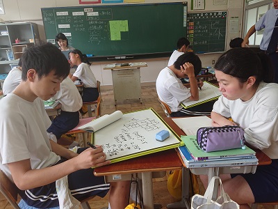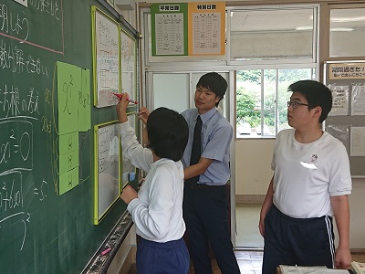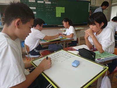 授業では、2次方程式の解き方をペアで話し合いました。みんな真剣に語っていました。