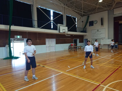 3年生は体育で、ペア同士でバドミントンの試合を行いました。みんな意欲的に活動していました。
