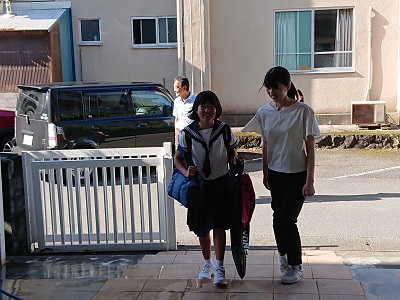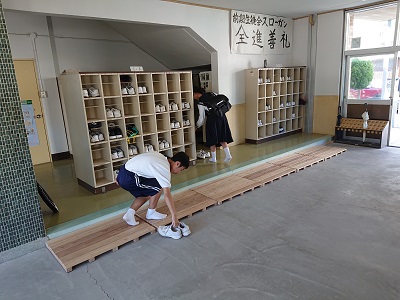 生徒が元気に登校してきました。今日も一日頑張っていきましょう。