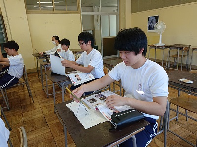 2年生は美術で自画像にチャレンジしています。一人ひとり鏡に映る自分を見つめ、どのように描くかを考えていました。