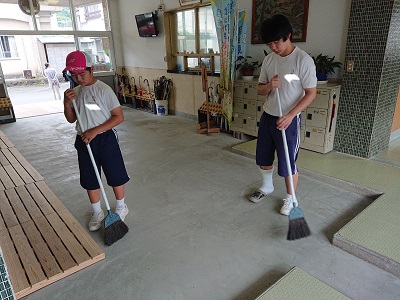 委員会活動の様子です。学習環境委員が常時活動として玄関掃除を丁寧に行っています。いつもありがとうございます。