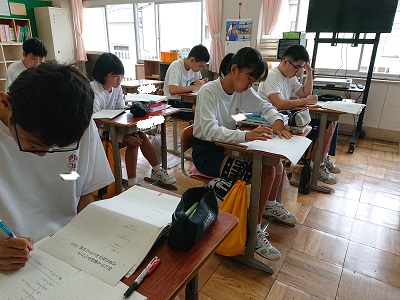 3年生は国語で「批評する言葉」という教材を学習しています。自分の考えを自分の切り口で伝える批評文とはどんなものか、実際に文章を書いて考えました。