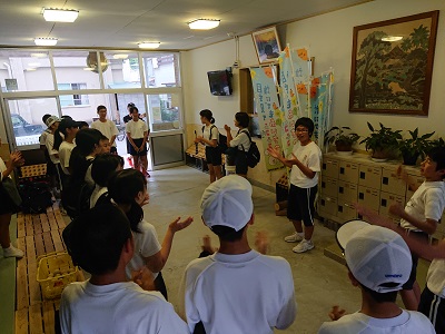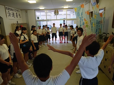 戸田中伝統の中体連に向かう先輩方をエールで送り出しです。