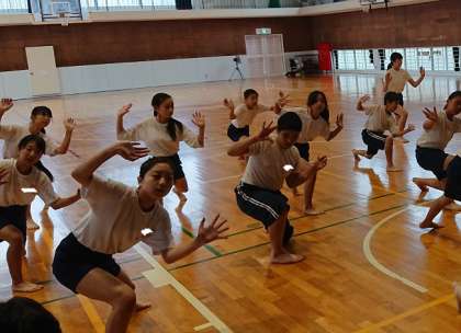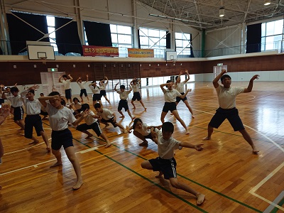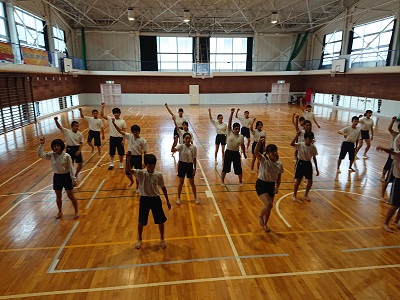 1年生は2年生と合同で体育を行っていました。合同体育として、20日の戸田港まつりにぎわい広場で披露するソーラン節を踊っていました。
