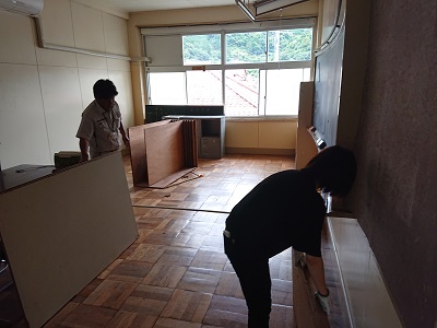 今日は、用務員やスクールサポートスタッフを中心に生徒会室の備品の分別を行いました。