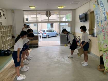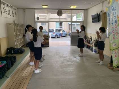 先日の沼津市総合体育大会(中体連)女子個人の部をもって3年生ペアが引退します。今日はお世話になった3年生へ、下級生から感謝の式を行いました。