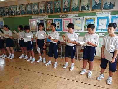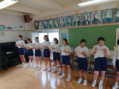 1年生は音楽で合唱曲「ふるさと」を歌っていました。きれいなハーモニーを奏でていました。