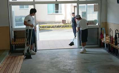 委員会活動の様子です。学習環境委員が常時活動として玄関掃除を丁寧に行っています。いつもありがとうございます。