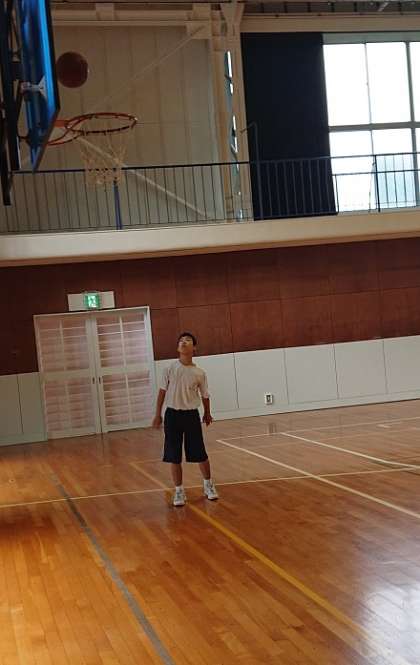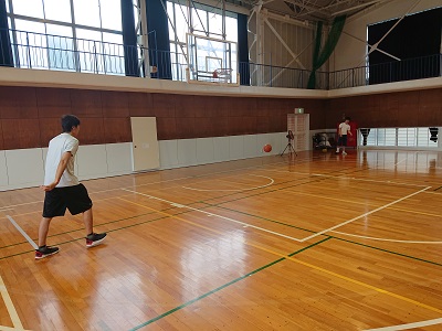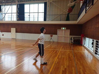バスケットボール部の朝練習の様子です。シュート練習を入念に行っていました。