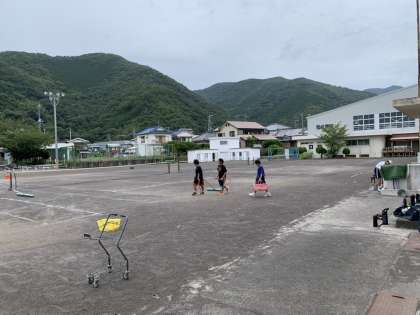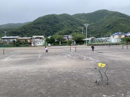 ソフトテニス部は、午前中に練習を行いました。全ての活動を終え、片付けをしているところです。