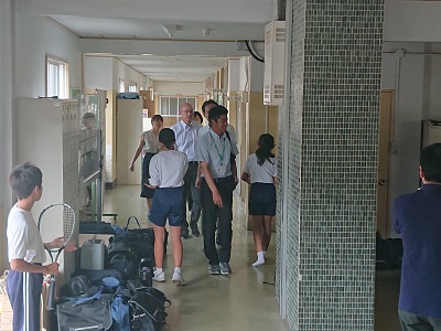 放課後の様子です。生徒や教職員が次の活動に向け移動中です。