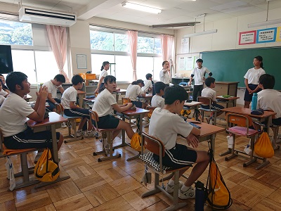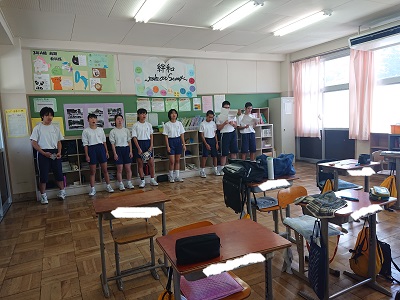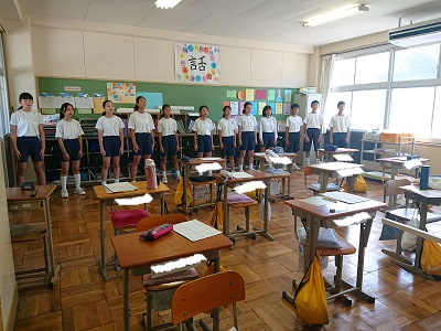朝の会の様子です。合唱練習、健康観察などを行っています。