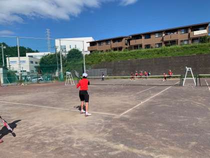 本日、男子ソフトテニス部は門池中に遠征し、練習会及び練習試合を行っています。個々のレベルアップを図るために頑張っています。