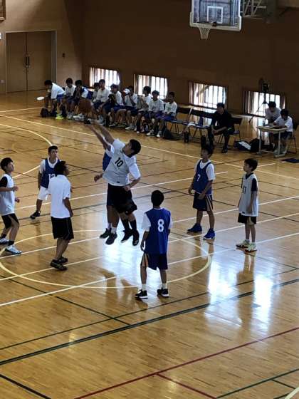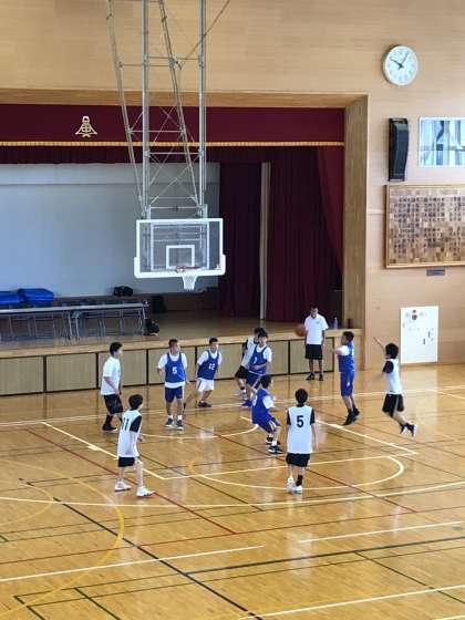 男子バスケットボール部は沼津第一中と合同チームを組んで試合に臨んでいます。今日も集中してゲームに参加しています。