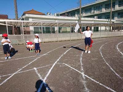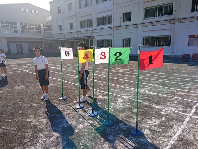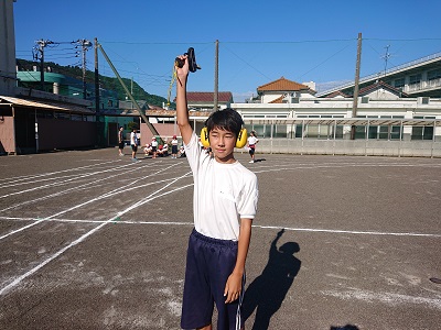 小中合同運動会では、小学生種目の際に中学生が係として活躍します。