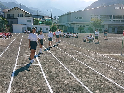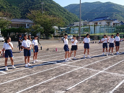 中学生実力走の練習も行いました。1組目だけ走り、それ以降の組は、みんなでランニングしました。