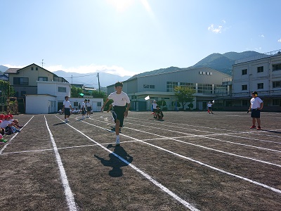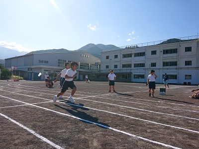 女子に引き続き、男子も実力走の練習を行いました。1組目だけ走り、それ以降の組は、みんなでランニングしました。