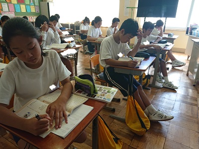 1年生は国語で「漢字を見抜く練習」という教材を学習しました。いくつかの漢字を使った問題について考えていました。