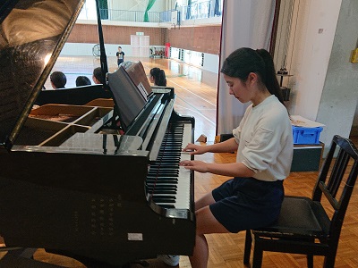 3年の指揮者、ピアノ伴奏者と呼吸を合わせて合唱を行いました。