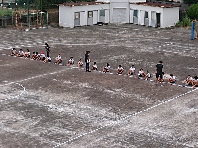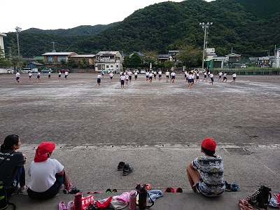 小中合同運動会に向けて、小学生がグラウンドで練習をしていました。
