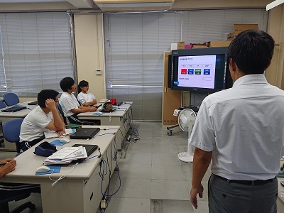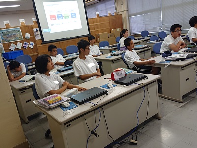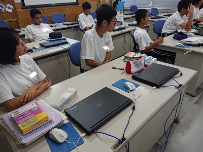 3年生は英語で間接疑問文を使った英文について、大型提示装置を使った説明を聞いていました。