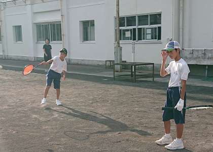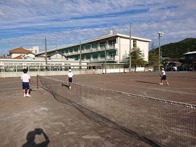ソフトテニス部の朝練習の様子です。新人戦に向けて、何球も打ち込みを行っています。