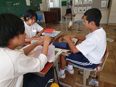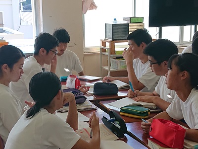 3年生は国語で「パネルディスカッション」を行います。今日はパネルディスカッションのための素材をグループで話し合いました。