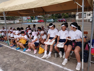 小中合同運動会開会前の様子です。皆さん、頑張っていきましょう。