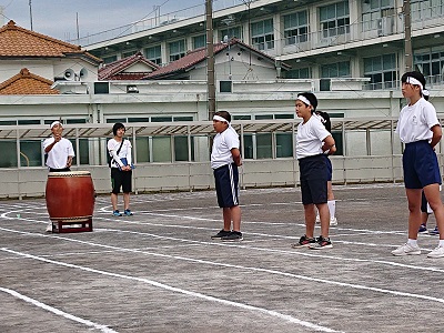 小中紅白応援団を中心に全体で応援をしました。力強い応援でした。