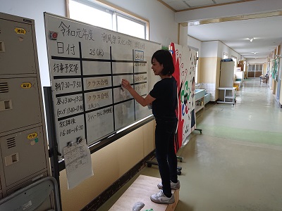 「チーム戸田中」の職員が校舎内の美化に努めています。