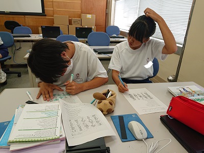 3年生は英語でワークノートを使いながら既習事項の確認をしました。